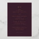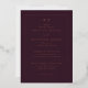 This elegant wedding invitation features a sophisticated maroon background with gold accents, creating an air of timeless elegance and luxury. The typography is refined and classic, enhancing the formal yet warm tone of the design. Perfect for couples seeking to convey a sense of grandeur and tradition on their special day, this invitation exudes understated opulence that will set the mood for a memorable celebration. With customizable text areas, it offers flexibility while maintaining its distinguished aesthetic.
