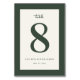 This elegant table card design features a minimalist and sophisticated style, perfect for a wedding celebration. The large, bold number "8" takes center stage with an understated yet refined typography that complements the clean layout. A muted green border frames the cream background, creating a harmonious color palette that exudes timeless charm and grace. Ideal for adding a touch of class to your special day, this design captures a serene and polished mood, ensuring it blends seamlessly into any wedding decor theme.