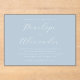 This elegant wedding invitation features a soft, pastel blue background with sophisticated cursive typography that exudes timeless charm. The minimalist design focuses on the text, creating an air of understated elegance and refinement. Perfect for couples seeking a classic yet modern look, this invitation sets a serene and romantic tone for their special day. Its clean layout allows for easy customization while maintaining its graceful aesthetic, making it ideal for any couple looking to celebrate in style.
