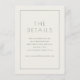 This elegant wedding enclosure card features a minimalist and sophisticated design, perfect for conveying essential details with grace. The clean typography and simple layout create an understated yet refined look, ideal for modern couples who appreciate subtle elegance. With its neutral color palette and structured frame, this card exudes a calm and inviting tone, ensuring your guests feel informed and welcomed. It’s the perfect addition to any contemporary wedding suite, offering a seamless way to share important information while maintaining a cohesive aesthetic throughout your special day.