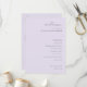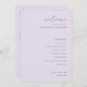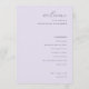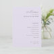 This elegant wedding program features a soft, pastel lavender background that exudes sophistication and romance. The design is minimalist with clean lines and an understated yet sophisticated typography style, creating a timeless and classic look perfect for a memorable celebration. Ideal for couples seeking a refined and intimate atmosphere, this program captures the essence of love and unity, making it a beautiful addition to any special occasion. Its simple layout allows for easy customization while maintaining its graceful charm.