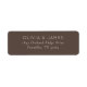 This elegant return address label design features a sophisticated and timeless style, perfect for special occasions like weddings or anniversaries. The clean typography is simple yet refined, complementing the classic brown color palette that exudes warmth and tradition. Placed on a crisp white background with subtle floral accents, it creates an inviting and polished look. Ideal for those who appreciate understated elegance, this design adds a touch of class to your correspondence while maintaining a versatile appeal suitable for various celebrations.