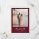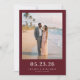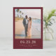 This elegant wedding save the date design features a romantic beach scene with soft, warm tones and a rich maroon border. The layout is simple yet sophisticated, highlighting the couple's photo while maintaining focus on the event details in clean, modern typography. Perfect for couples celebrating their love by the sea, this design conveys a serene and joyful mood, ideal for setting the tone for an unforgettable coastal celebration. Customize it to share your special day with loved ones effortlessly.