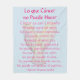 Art features the "What Cancer Cannot Do" Poem in Spanish or Español. This painting has a colourful rainbow hearts angel and the poem of "Lo que cáncer no Puede Hacer" is printed over it. The poem words say "Lo que cáncer no puede hacer. Cáncer es tan limitado…No puede paralizar amor. No puede romper esperanza. No puede corroer fe. No puede destruir paz. No puede matar amistades. No puede suprimir memorias. No puede silenciar valour. No puede invadir el alma. No puede robar la vida eterna. No puede conquistar el espíritu. -Autor desconocido"