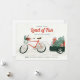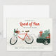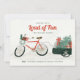 This illustrated holiday greeting card features a hand drawn image of a cheerful, red bicycle carrying a load of holiday treats, gifts, and decorations.