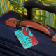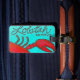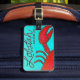 This lobster luggage tag is vibrant and fun. It features a hand-painted lobster against a vivid turquoise background and is crafted from durable lucite. The tag is thick, hefty and strong. A sturdy buckle strap, in a coordinating colour, ensures it attaches securely to any luggage handle. The overall aesthetic is playful yet chic, and makes your bag noticeable at baggage claim.