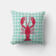 Fun throw pillow that goes with all sorts of coastal and summer decor themes! Design features red lobster silhouette on blue gingham background