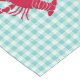 Fun tablerunner that goes with all sorts of coastal and summer decor themes! Design features centre red lobster silhouettes on blue gingham background