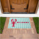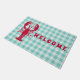 Fun welcome mat that goes with all sorts of coastal and summer decor themes! Design features red lobster silhouette on blue gingham background