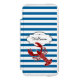 Bright blue and white horizontal stripe phone wallet with a lobster and a white banner you can easily customise with your name!