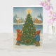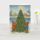 Celebrate the season with a nautical twist. This coastal Christmas card features a festive lobster trap tree decorated with colourful buoys, garlands, and a golden star.
