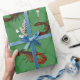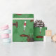 Add a festive nautical touch to your Christmas gifts with this festive wrapping paper. It features realistic style illustrations of lobsters and vintage wooden fishing buoys against a green Christmas tree patterned background.