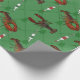 Lobsters and Fishing Buoys on Green Christmas Wrapping Paper