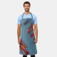 Long kitchen apron with lobsters design for dad or any man. Colonial blue colour with all over crabs and lobsters pattern. Two big, red lobsters crawl up from the bottom and in from the top side. A perfect addition to a seafood lover's kitchen. Angled text over a blue brushstroke is "Dad", but can be changed to "Mum" or a personal name. Shown on the longest apron, with a shorter version available.