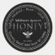 Black Label with the word HONEY written & reflected in silver on black background with double silver and dotted border. Vintage bee outline illustration. Pre-calculated list of honey net weight conversions. Editable text in a curved border.