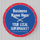 Wall Clock for a Village Shop, Local Supermarket, Convenience Store, or Local Grocers. Edit the design to change the wording to suit. Blue and Red colours.
