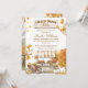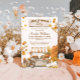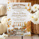 Invite loved ones to a cosy celebration with this charming baby shower invitation. This rustic design features a delightful watercolor illustration of a farmers market stall brimming with pumpkins and autumnal decor. With a vintage bicycle and falling leaves, it’s the perfect choice for a fall-themed or harvest-inspired baby shower, creating a warm and welcoming atmosphere for a new little one.