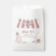 A baby shower favor bag to match our Locally Grown Baby Farmer's Market Baby Shower collection. This paper favor bag features a hand painted market awning with the words "Locally Grown Baby". There are whimsical bows on either side. Below, the text "thank you" appears in rustic calligraphy, and your name is in a serif font surrounded by watercolor fruits and a sandwich board with the your event date. Perfect for filling with candies, small gifts, or treats for your guests. View the collection linked on this page for the full baby shower bundle. Visit our store for more baby shower designs.