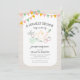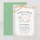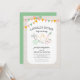 This cute Farmers Market themed baby shower invitation is perfect for a gender neutral event. The design features simple illustrations of a variety of vegetables paired with a watering pail and is accented with colourful pennant banners.