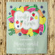 Locally grown! Farmer's market birthday with fruits and veggies. Features orange carrots, yellow peppers, tomatoes, watermelon slices, strawberries and blueberries