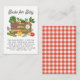 These fun Books for Baby enclosure cards feature a hand drawn illustration of a wooden crate full of vegetables, with a little organic label accent. Perfect for a locally grown / farmers market baby shower theme! The back contains a matching red gingham pattern.
