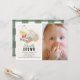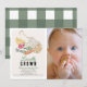 This cute "Locally Grown" farmer's market gender-neutral 1st/first birthday photo invitation features a french crochet market bag with vegetables and fruits. The reverse side features a white background with green gingham plaid. Personalise for your needs. You can find matching products at my store.