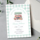 Celebrate the mum-to-be with our cute Locally Grown-themed invitation. The design features a cute watercolor farmer's market stand on a green gingham background, making it both stylish and charming. Use the design tools to customise the text. Also available as digital download.