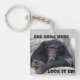 Acrylic keychain with a chimpanzee with and expression. Looks like he/she is thinking about something.