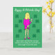 Funny Cartoon of a woman who hasn't had her hair cut since lockdown began clutching a bottle of wine and a wine glass to celebrate St Patrick's Day. Caption reads 'Happy St Patrick's Day' and 'Name hadn't had her hair cut since lockdown but luckily see could still see well enough to pour the wine'. Easily personalise this card by editing the template text. Thank you for viewing my cartoon designs!