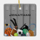 Locker Room Design Ornament, featuring various sports' equipment in front of a set of lockers. All text customisable, front and back!