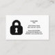 Locksmith Business Card template with padlock logo. Modern design with lock and keyhole icon. Create custom colour cards with your contact details and company name. Professional card for shop, security expert, safe storage, store and more. Rounded corners optional.