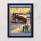 Wonderful artwork featuring three train engineers and a little girl watching as a huge steam train arrives as the station.