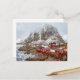 This one-of-a-kind travel postcard showcases a stunning photo of the charming little fishing village of Lofoten, Norway. This delightful postcard would make a perfect greeting for close friends, family, and coworkers.