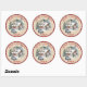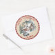 Log Cabin in the Mountains Christmas Round Label. From our Winter at the Cabin Collection. Log cabin with with Star of Bethlehem shining brightly. A vintage truck is loaded with gifts and decorations for the special day. The cabin is lit up for anticipated guests. Warm and cosy. Perfect to label your gift packages, gift bags, food gifts. "Merry Christmas!" Personalise with your own name.