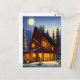 Log Cabin In The woods Snow landscape Art digital painting postcard