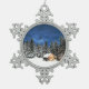 Log Cabin Mountain View Snowflake Pewter Christmas Ornament