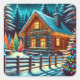 Log Cabin on Christmas Eve Square Sticker