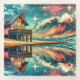 Beautiful colourful waves and a log cabin overlooking the ocean on a starry night.