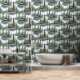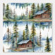If you love trees, log cabins and camping, here is the perfect peel and stick wallpaper for you. Watercolor illustration of log cabins in the pine trees.