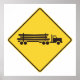 A road sign indicating that there is logging trucks. This design looks really effective on this Poster