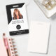 This modern name badge design can be customised with your business name, logo and contact details as well as an employee photo and barcode.