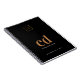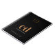 Black background, golden and white text. Personalise and add your logo, monogram initials, name and a title.