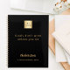 Black background and golden text. Personalise and add your logo, name and a title year 2026 (any year). Your logo both on the front and the back. Space for your website address on the back. Quote: Goals don't work unless you do.