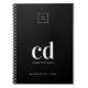 Black background and white text. Personalise and add your logo, monogram initials, name and a title.
