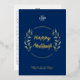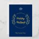 Wish a happy holiday to your business associates and your employees with this elegant simple modern holiday card. Featuring your custom logo, it will create the perfect holiday feeling to everyone who receives it. This classy and festive clean minimalist card has a watercolor leaves wreath graphic with real gold foil pressed elements on a classy navy blue background, which you can change to any other colour to match your business colour scheme, stylish yet elegant Happy Holidays text in a great circular frame. The back side has clean minimalist 2023 Calendar. This Happy Holidays card template is ready for your online personalisation. The gold foil can be changed to rose gold or silver.
