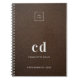 Brown faux leather photo as background and white text. Personalise and add your logo, monogram initials, name and a title year (any year).