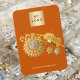 A display card for your handmade earring or jewellery. A bunt orange coloured background, white text. Personalise and add your business logo and contact information on the front.