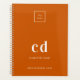 Burnt orange background and white text. Personalise and add your logo, monogram initials, name and a title year. Your logo both on the front and the back. Space for your website address on the back.