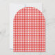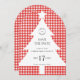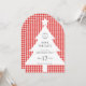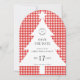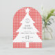 Elegant Logo Company Christmas Tree Party Save the Date. Available digitally and printed. for employees and clients, let them know your company party date well in advance. With a red gingham background, and text within a Christmas tree shape. Easily personalise the words and replace the sample logo with your own.