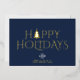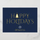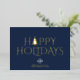 Send a polished and professional holiday greeting to your clients, employees, and business partners with this elegant, minimalist "Happy Holidays" card. The design features a chic gold foil "Happy Holidays" message, with a festive twist: one of the letters is transformed into a simple, stylised Christmas tree. Set against a customisable navy blue background, this card blends sophistication with seasonal cheer.